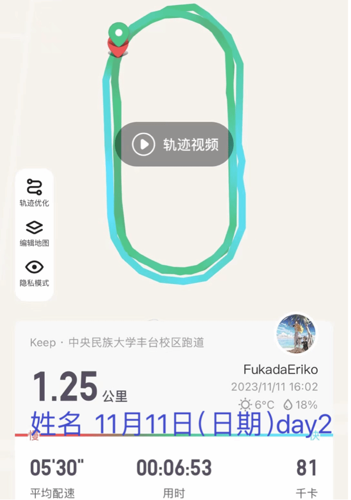 1.Keep截图要求:参与活动前需要提前下载好Keep软件,每日跑步结束后截图自己的Keep打卡情况,截图需包括里程、时长等信息,并在截图上备注好个人姓名与打卡日期。出于安全保护的考虑,此次活动要求必须在丰台校区或者海淀校区的操场跑道上进行跑步锻炼。
