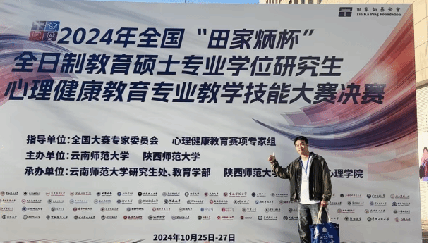 “从院赛、全国初赛到全国决赛,持续了五个多月,回顾比赛的点点滴滴,感谢老师们细致的指导,感谢小伙们的齐心备赛,对我来说,备赛的过程远比最后的结果更重要。在提升自己的讲课能力的同时,也认识到了自己的不足,例如专业知识不够扎实,教学过程缺乏理论基础等。闭幕式上,评委老师提到,心理健康教育专业的员工不仅要掌握发展心理学的知识,社会心理学、人格心理学等也要掌握。我意识到,仅仅掌握单一领域的知识是远远不够的,我们需要具备更广阔的心理学视野,才能更好地将所学应用于实践中。未来,我将进一步夯实专业基础,创新教学环节,不忘心理健康教育的初心!”