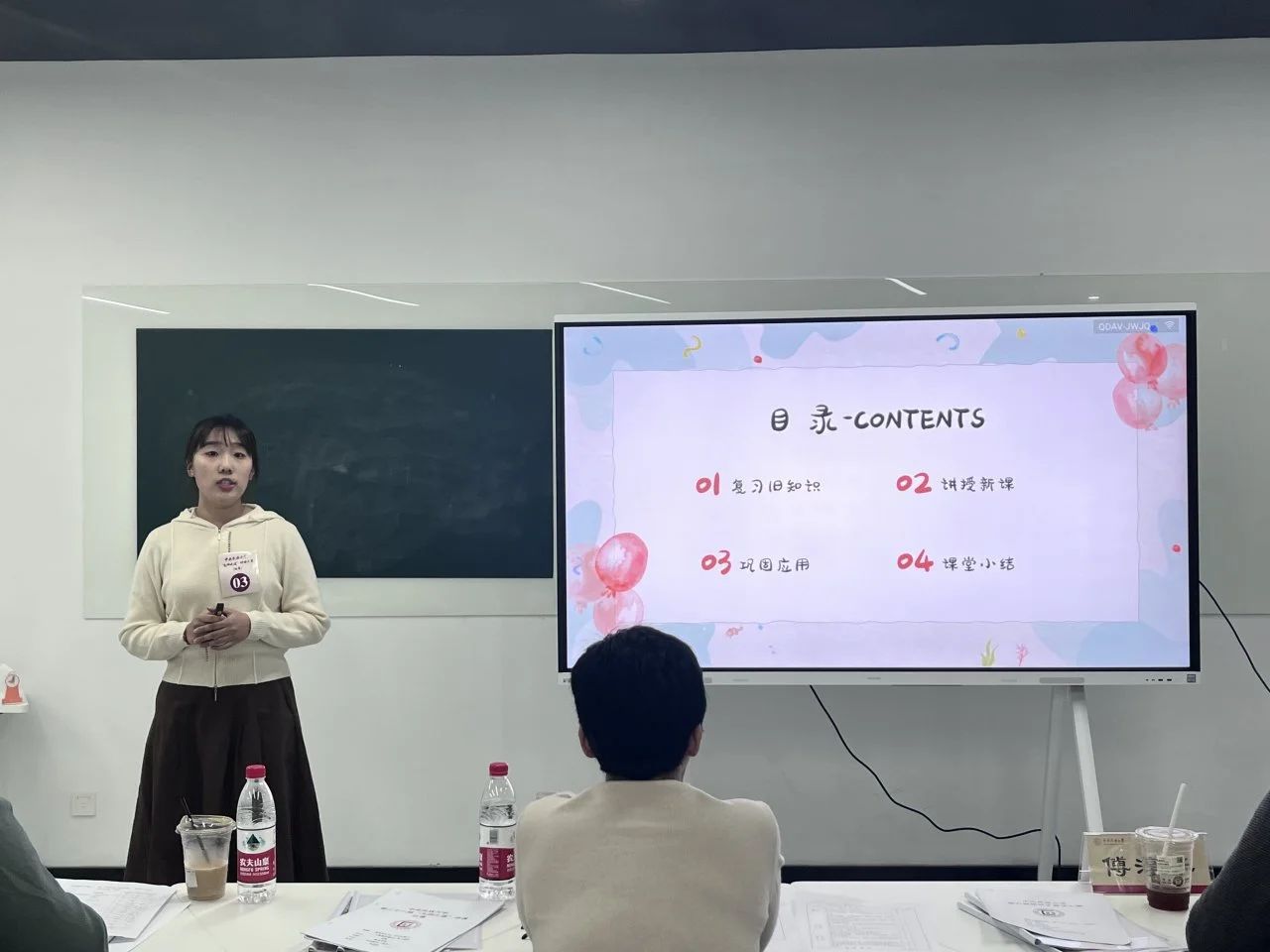 赛后,各组评委老师对参赛选手的表现给予了高度肯定和赞扬,并从设计理念、教学内容、教学目标、教学过程、教学方法等方面进行了专业点评。评委老师的点评深刻,引人深思,令在场的同学们受益匪浅。