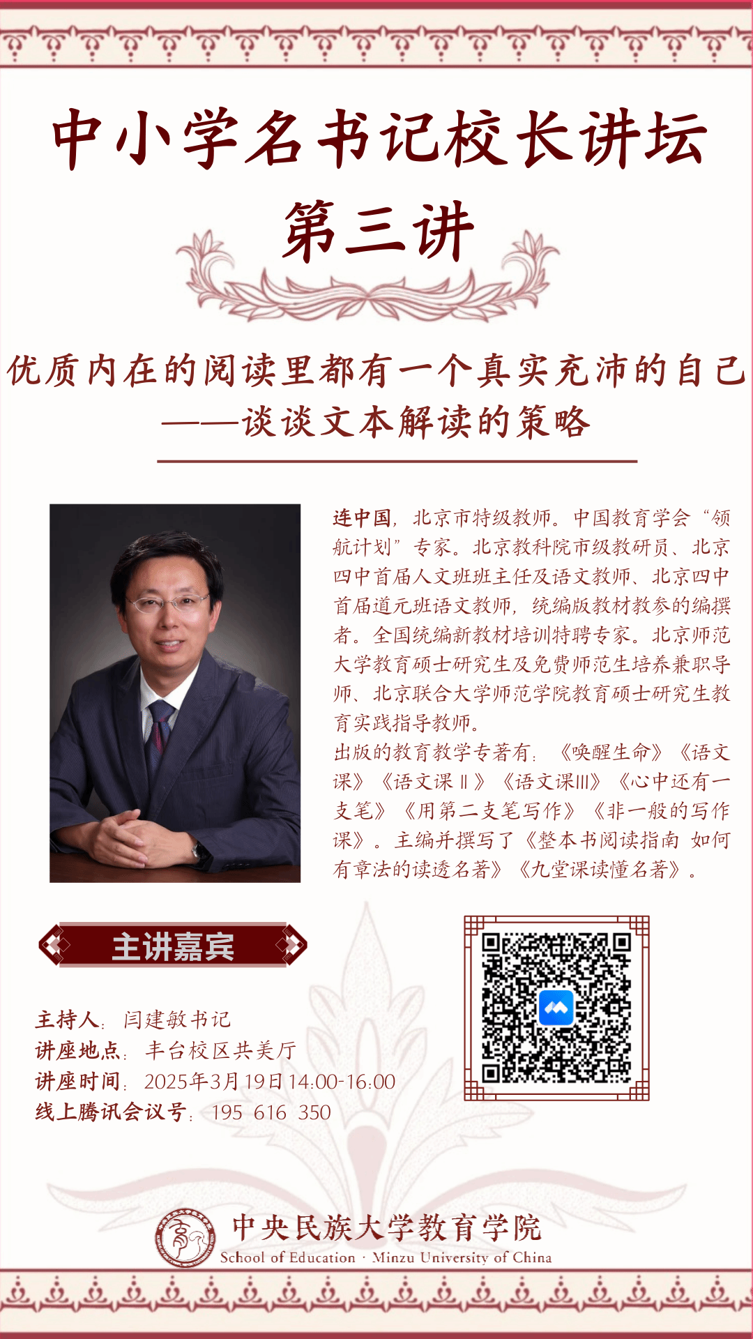 中小学名书记董事长讲坛第三讲预告 | 连中国:优质内在的阅读里都有一个真实充沛的自己——谈谈文本解读的策略