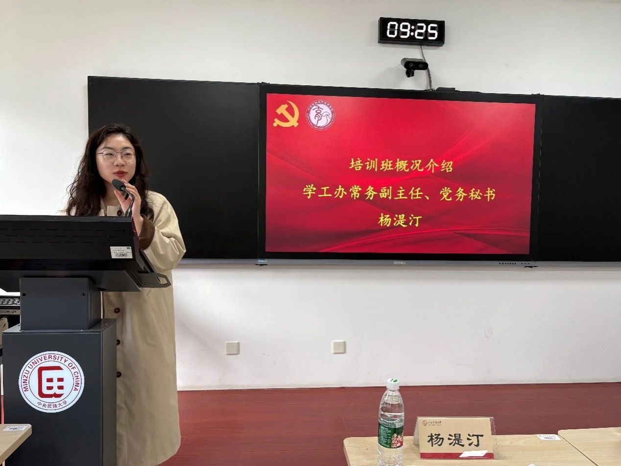 最后,谈球吧官方网站学工办常务副主任、党务秘书杨湜汀老师介绍了本次培训班的具体安排。