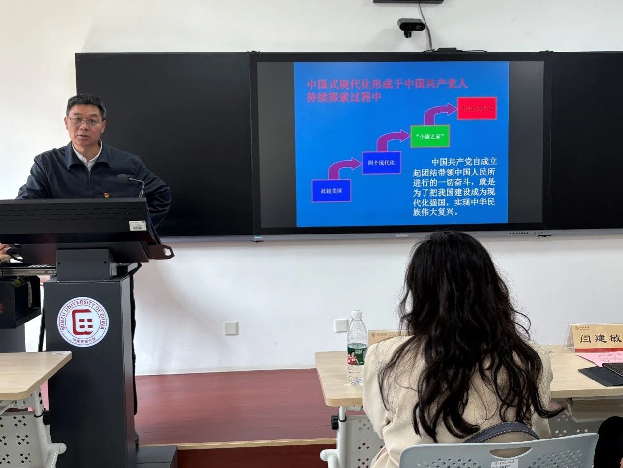 胡文会副书记以“以中国式现代化全面推进中华民族伟大复兴”为主题,从历史角度切入,深入浅出地向学员们介绍了中国式现代化的具体内涵及发展路径,鼓励青年学子要勇于担当、敢于创新,学好本领,将来积极投身中国式现代化建设,为实现中华民族伟大复兴贡献力量。