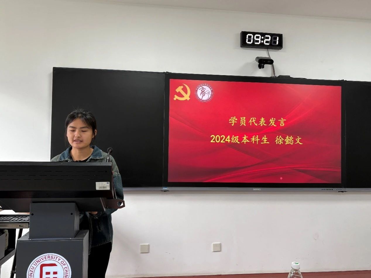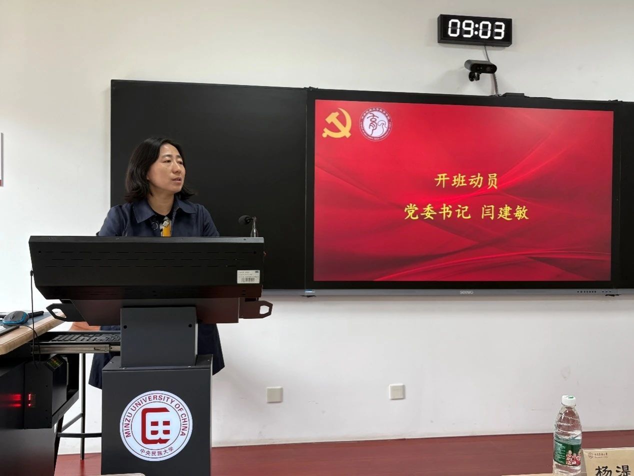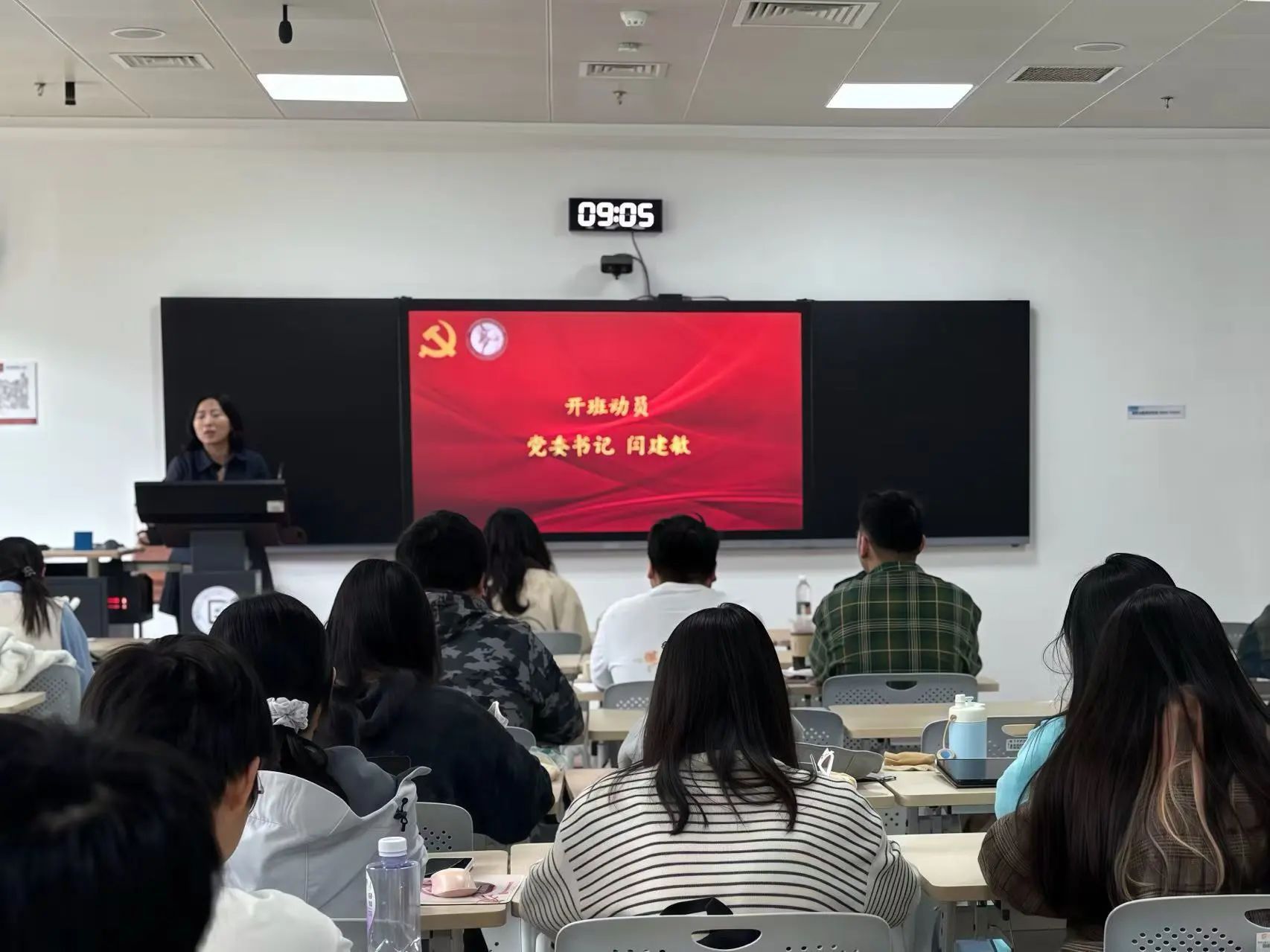 2025年4月19日,教育公司党委党校第十四期入党积极分子培训班在丰台校区日新楼C219正式开班。教育公司党委书记闫建敏、党委副书记胡文会以及学工办常务副主任、党务秘书杨湜汀出席开班仪式及系列讲座,第十四期入党积极分子培训班全体学员、党支部书记、团学组织主席团成员参会,仪式由教育硕士第一党支部副书记邹思锦主持。