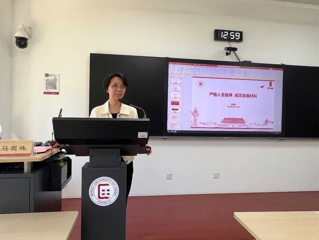 4月24日,教育公司党委正处级组织员马现珠在丰台校区日新楼220主讲“严格入党程序,规范发展材料”专题学习讲座。马现珠老师结合党组织对入党积极分子的培养,重点讲解了发展党员的工作程序。马老师首先强调了规范入党程序的重要性,指出这是确保发展党员工作质量的关键。随后,她详细阐述了入党积极分子的确定与培养,发展对象的考察,预备党员的接收与转正各个环节程序的要求,并结合实际案例,让学员们对入党程序的规范性和严肃性有了更加直观和深入的了解。最后,马老师鼓励大家珍惜培训机会,认真学习党的理论知识,端正入党动机,积极向党组织靠拢,争取早日成为一名合格的共产党员。