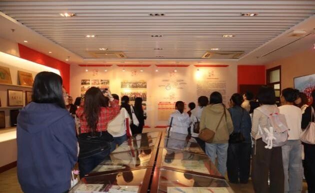 校史馆内,师生们跟随讲解,回顾了北京联合大学特殊谈球吧官方网站的发展历程。从初创时期的筚路蓝缕,到如今的成果斐然,一代代特教人的辛勤耕耘与不懈追求,深深打动了在场的每一个人。这段砥砺前行的历史,不仅是一部公司成长史,更是一曲尊重差异、赋能生命的赞歌,激励着两院师生在各自领域继续贡献力量。特别引人注目的是馆内循环播放的手语国歌,北京联合大学特殊谈球吧官方网站的老师向我们介绍“手语国歌是公司完成的一项重大工作,确认并统一了国歌手语标准,也是增进中华民族共同体意识的重要一步!”