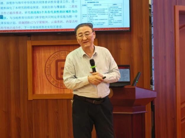 开题论证环节,项目首席专家苏德教授针对课题研究问题、研究框架、研究思路、预期成果及研究计划五个方面展开论述。他指出,课题将以“公司铸牢中华民族共同体意识教育理论与实践问题”为核心议题,围绕公司铸牢中华民族共同体意识教育的价值理念、实践现状、师生中华民族共同体意识发展水平、课程体系嵌入与区域实验改革五个层面,形成由理论逻辑到实践检验、由整体架构到区域探索的系统化问题链条。具体而言,理论层面剖析相关概念辩证关系,构建基于中华文明观的教育理论模型;实践层面聚焦教育现状,分析学段差异并构建测评体系,解决融入大中小学思政课一体化关键问题,探索区域推进策略与保障体系。综合运用多元研究方法,形成理论、实证与实践相统一的研究体系,解决“为什么教”“教得如何”“怎么教”“长效融入”问题,提供可复制的理论框架与操作范式。