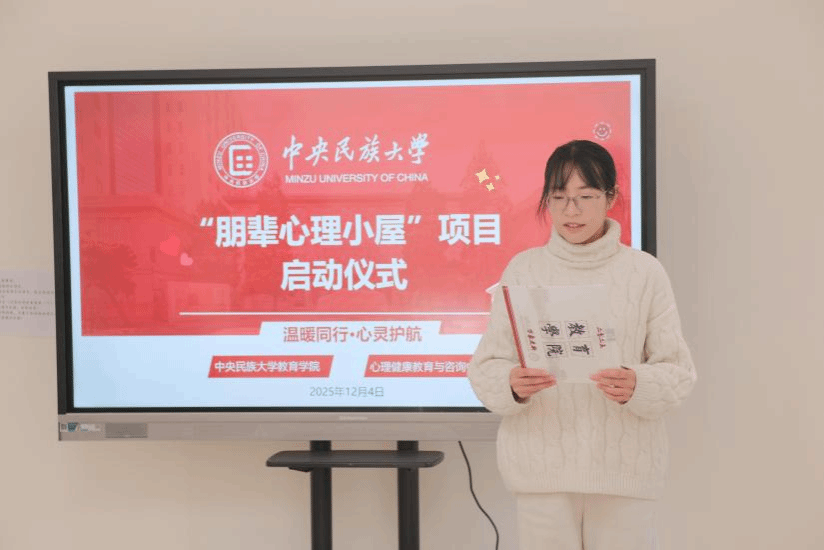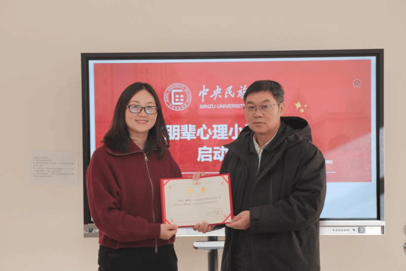 仪式上,胡文会宣布项目启动,并为余红玉颁发项目负责人聘书。余红玉分享了项目初心及一对一支持、朋辈成长团体等服务规划。张阳阳就朋辈心理小屋使用规范提出工作要求。研究生代表赵嘉澜表示,作为首批朋辈心理辅导员,将充分履行倾听者、陪伴者与同行者的职责,以真诚守护每份信任。