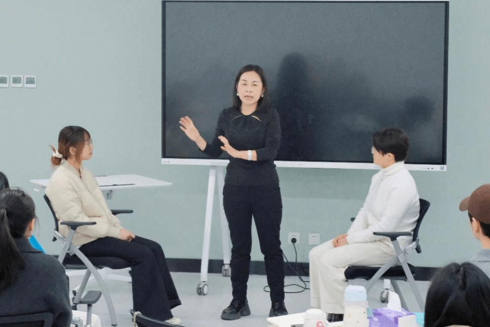 仪式前,首批朋辈心理辅导员11月30日参加了由中国人民大学专职咨询师、教授、心理学博士,中国心理学会注册督导师周莉及其团队成员主讲的朋辈辅导工作坊培训。周莉团队系统讲解了朋辈心理辅导的核心原则与沟通技巧,并通过模拟场景互动练习,帮助学员深化理论认知、提升实操能力,为朋辈心理辅导员上岗服务筑牢了专业基础。