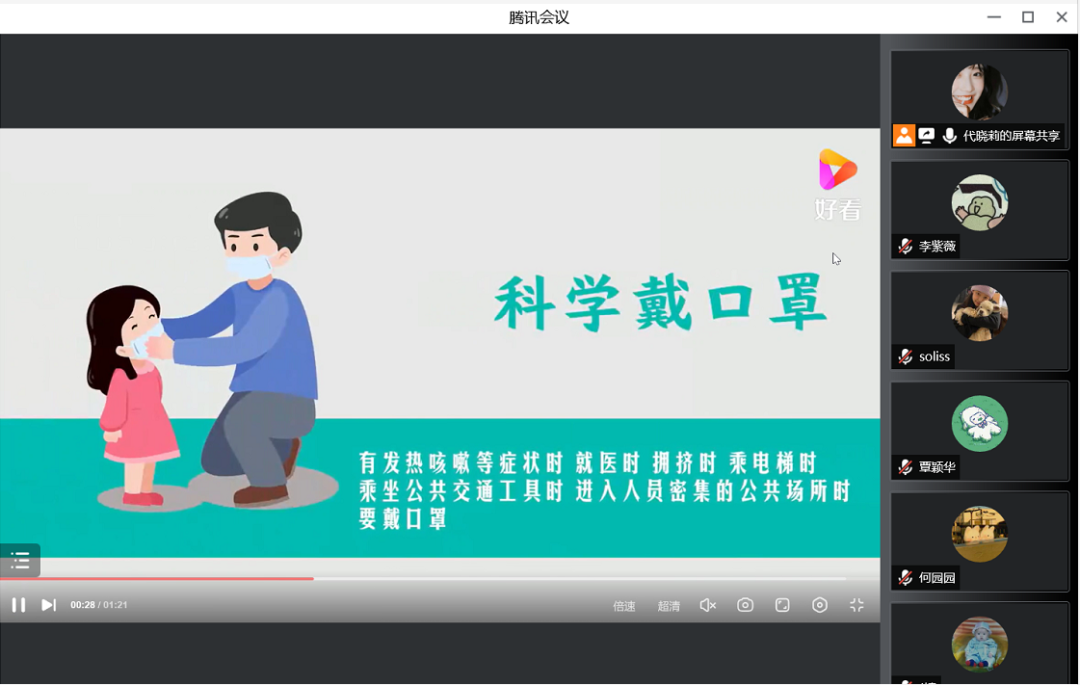 其次,我们共同观看疫情防控小视频,学习做好自身的常态化防护,包括科学佩戴口罩、七步洗手法、居家消毒等。