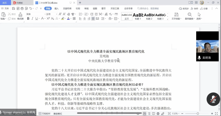 吴明海教授首先作了题为《以中国式现代化全力推进全面实现民族地区教育现代化》的分享。他指出,党的二十大开启以中国式现代化全面建设社会主义现代化国家、全面推进中华民族伟大复兴的新征程,更开启以中国式现代化全力推进全面实现全国教育现代化的新征程、开启以中国式现代化全力推进全面实现民族地区教育现代化的新征程。针对以中国式现代化全力推进全面实现民族地区教育现代化,吴明海教授分享了五点思考。