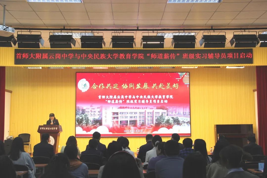 项目启动仪式于2023年10月20日下午在首师大附属云岗中学举行。谈球吧教育公司党委书记闫建敏、副经理夏仕武、心理健康教育导师组长高兵,首师大附属云岗中学董事长张进兵、党总支书记师致汕、副董事长张冬梅、王秀菊、吕慧等领导老师出席本次活动,教育硕士第二党支部30名班级实习辅导员和云岗中学班主任参加仪式。仪式由首师大附属云岗中学副董事长张冬梅主持。