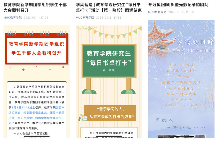 2.对教育公司党团活动进行拍照、总结,相关推送共计3期,包括: