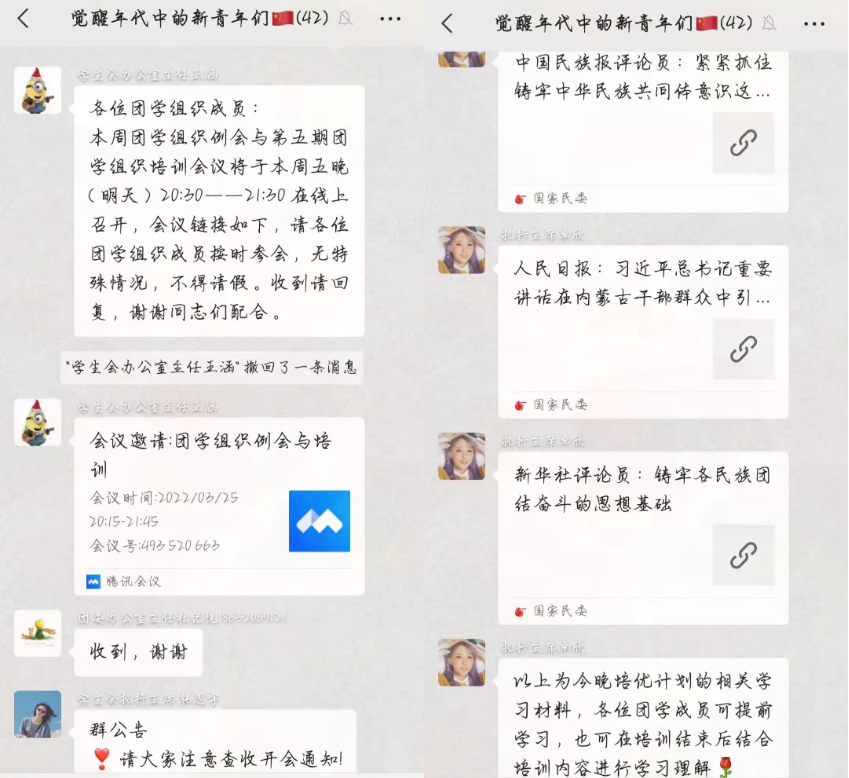 收集每次青年大学习的团委成员学习截图,监督大家按时进行团课学习,加强青年思想教育。