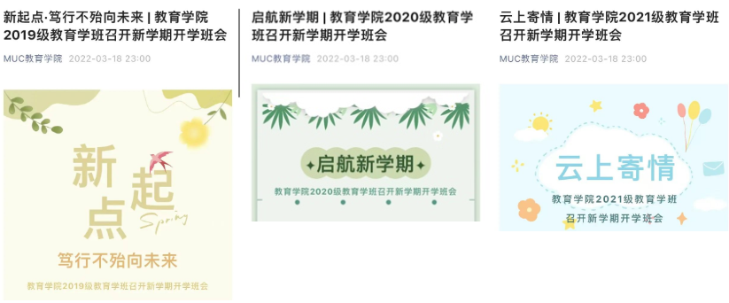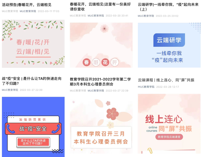 2. 主办“春暖花开,云端相见”线上活动,对投稿进行筛选,并进行活动预告等相关推送文案的撰写。