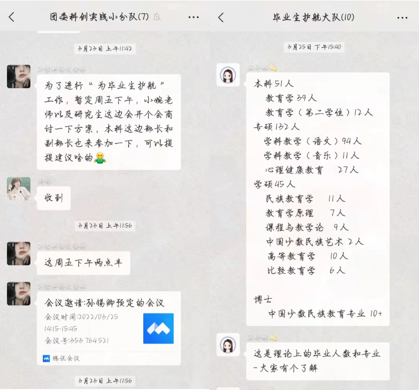2.计划并安排毕业生护航工作,召开毕业生护航工作小组会议,对毕业生护航工作组进行分组和任务分配,跟进工作组工作进度。