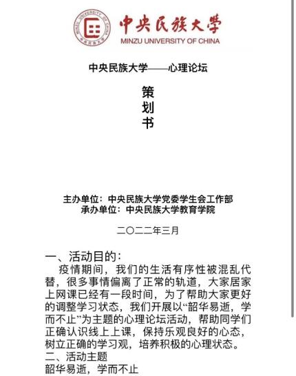 3.确定三月份心理论坛举办形式、主题并撰写策划书。
