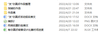 4月14日-4月24日,文体部工作人员共收集了公司同学40份作品,审核与择优工作正在有序推进,预计在4月30日前与宣传部对接推出创意短视频活动的结果推送。