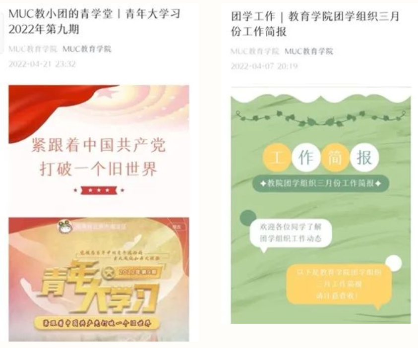 2.对谈球吧官方网站团日及团学活动进行拍照、总结,相关推送共计3期,包括: