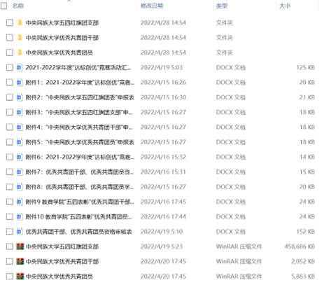 2.审核和改正优秀团员、优秀团干部、五星红旗团支部的材料,修改了材料格式和申报人的各项情况细则。