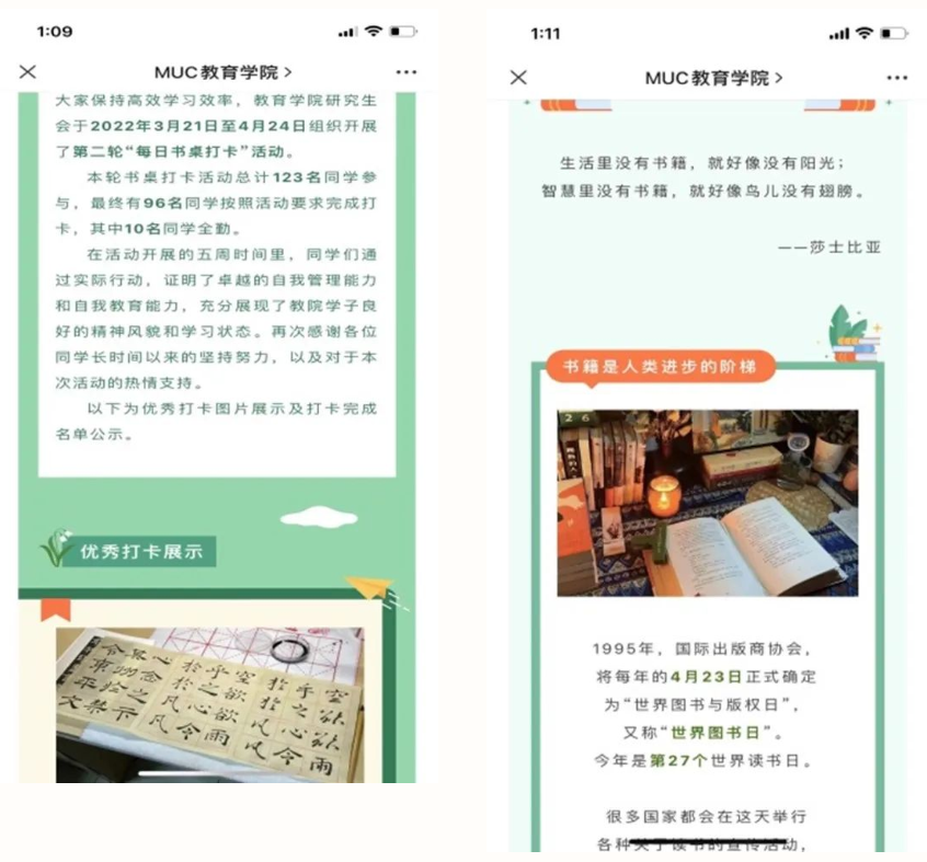5.举办谈球吧官方网站研究生第二轮“每日书桌打卡”活动。