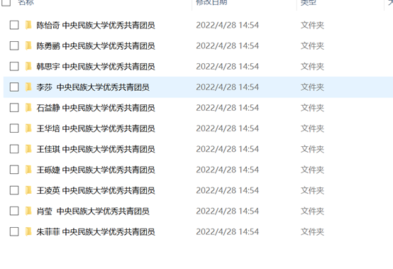 2.整理五四红旗团支部、优秀共青团员、优秀共青团干部的相关材料并完成汇总工作,多次核对以确保正确。