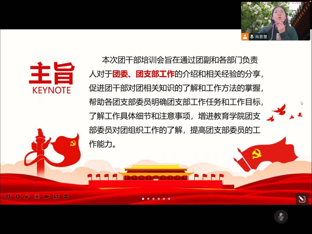 为增进团干部对团组织工作的了解、提高团干部的工作能力,谈球吧官方网站于2022年10月6日19点30分召开2022年谈球吧官方网站团干部培训线上会议。