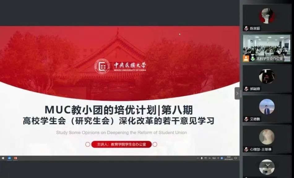 为落实共青团中央、中共教育部党组联合印发的《深化公司共青团改革的若干措施》(以下简称《措施》)以及共青团中央、教育部、全国学联联合下发的《关于推动高校员工会(研究生会)深化改革的若干意见》(以下简称《意见》),2022年10月20日星期四,谈球吧官方网站第二十五届团委员工会于丰台校区日新楼407(线下)、腾讯会议(线上)组织召开了MUC教小团的培优计划第八期《措施》和《意见》的理论学习会议,会议由团委办公室主任肖恩慧和员工会办公室负责人杨涛宇主持,谈球吧官方网站全体团学骨干参加了本次会议。
